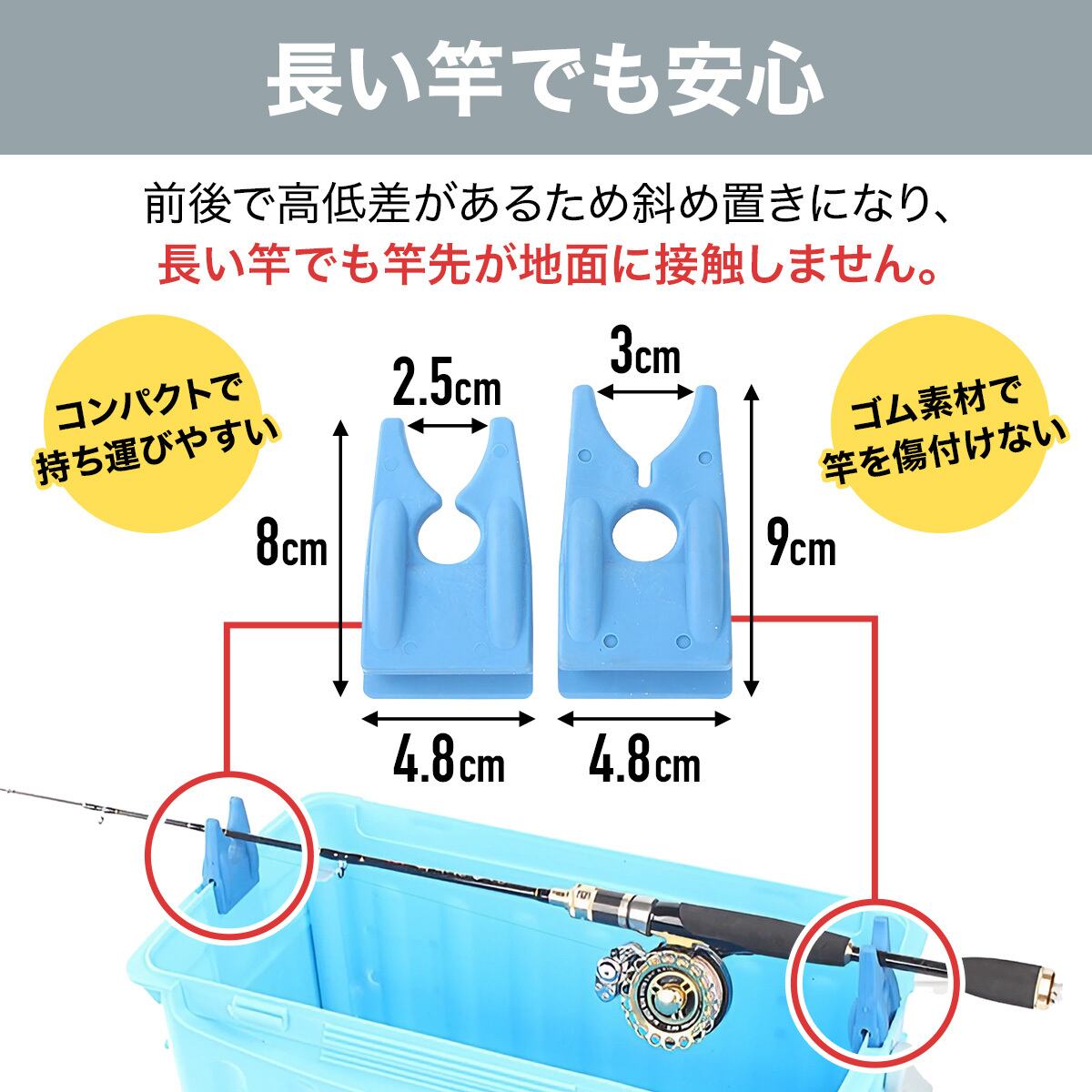 ・ゴム素材で竿を傷付けない