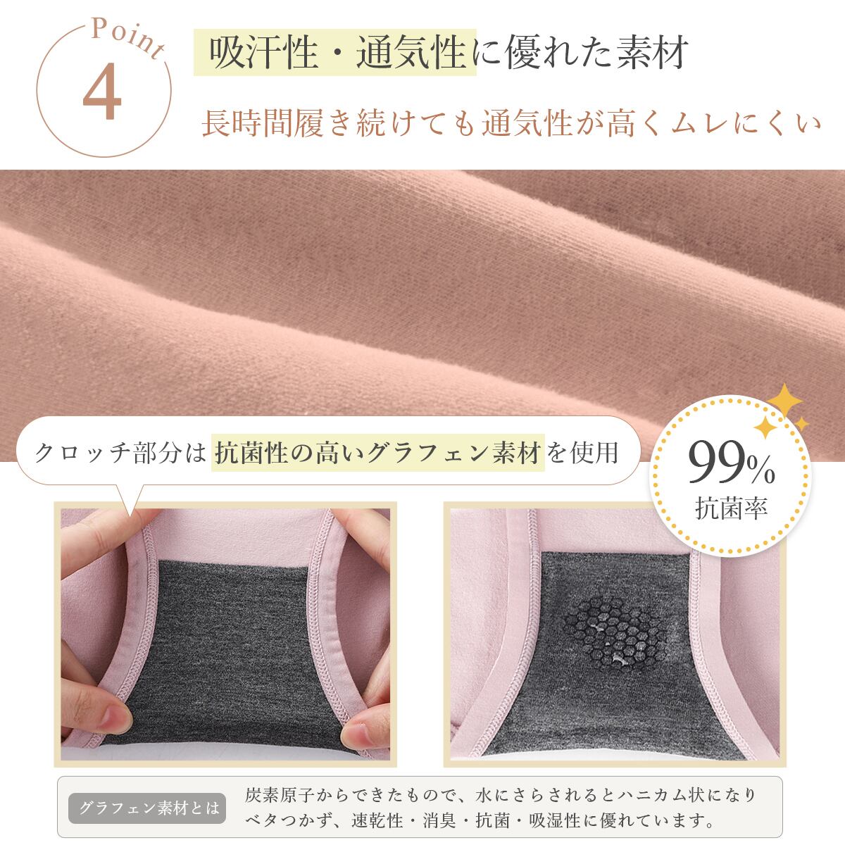 クロッチ部分は抗菌性の高いグラフェン素材を使用し99%の滅菌率。