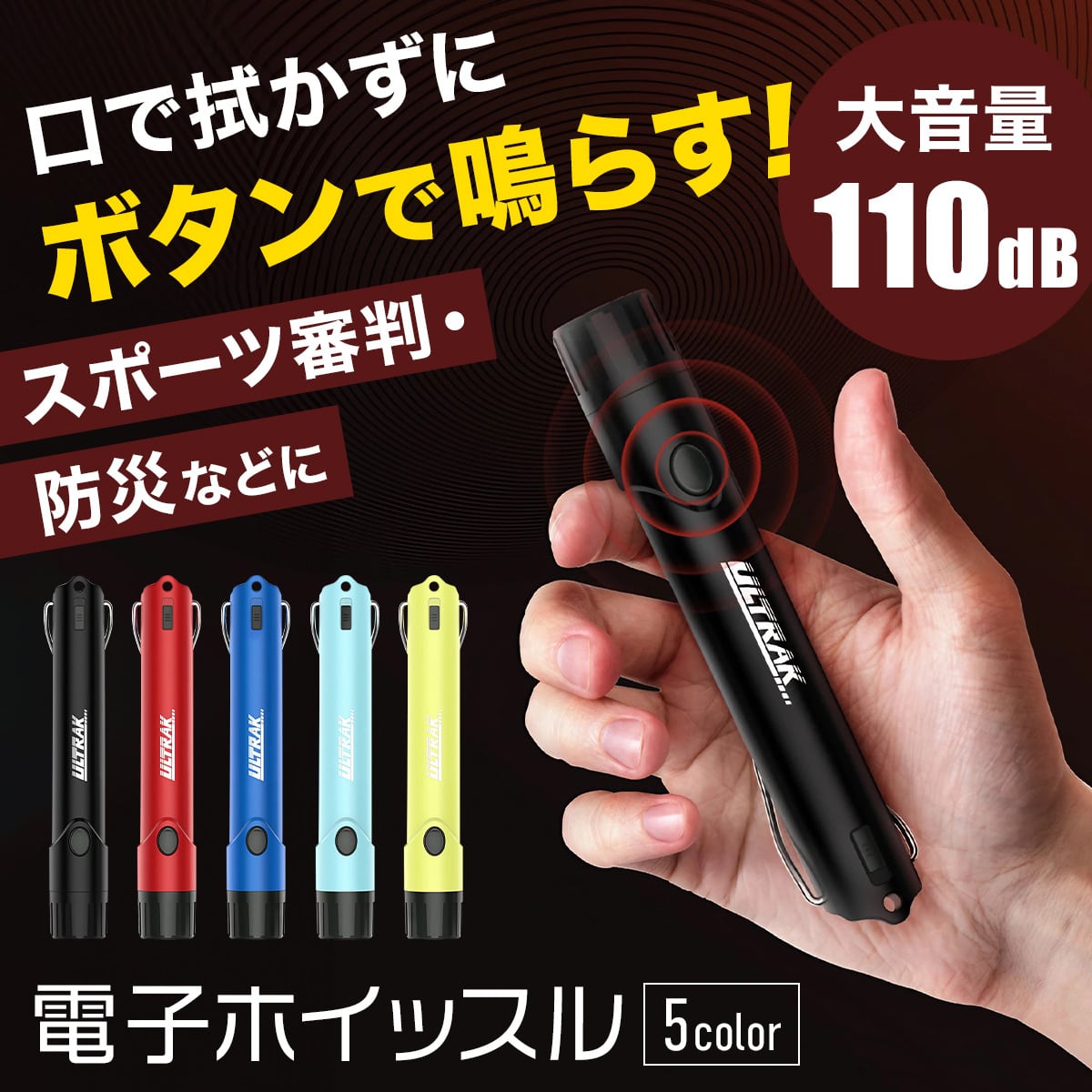 ボタンを押すだけで110dBの大音量の電子ホイッスル。