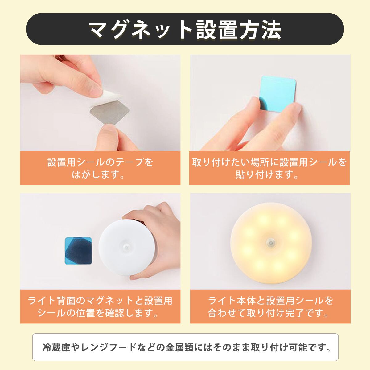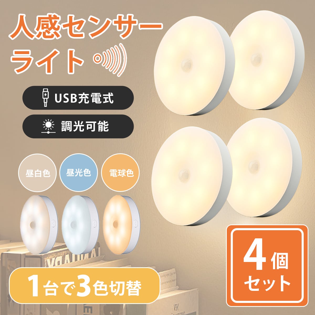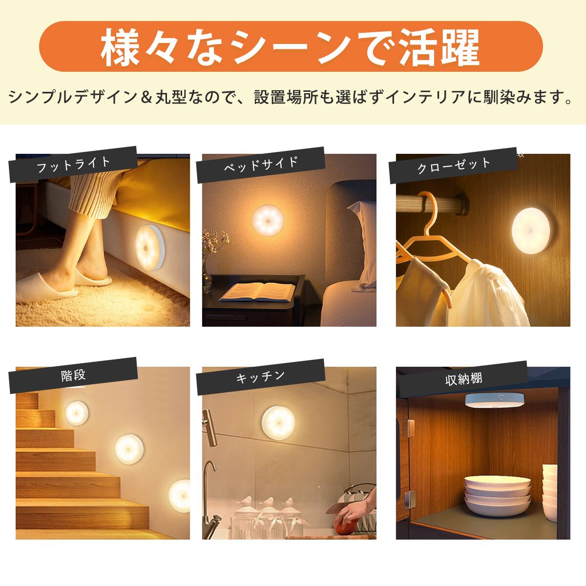 4個セットで玄関、廊下、寝室、子供部屋など様々な場所にお使い頂けます。