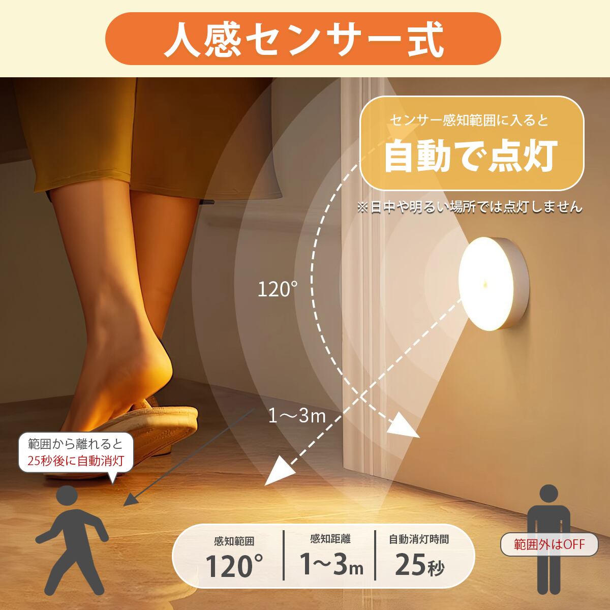 人感センサー(25秒で自動消灯)